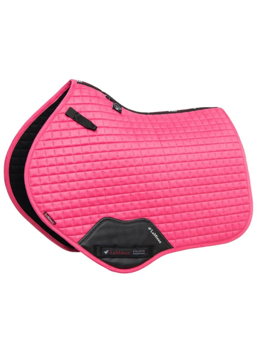 Now with a New Super Soft Suede Binding and New PU Leather Girth Protection area, the classic Close-Contact cut from LeMieux is designed to fit a wide range of more forward cut jumping saddles. Now one of the most iconic jumping pads with its high wither, elasticated D-Ring tabs and swept back profile . These saddle pads offer a very sleek and professional look to anyone’s saddle. The luxurious suede top side and new soft suede binding is complimented by super soft Bamboo lining which absorbs & controls sweat under the saddle and is beautifully comfortable and secure – minimising friction even on sensitive skinned horses. Girth keepers incorporate inner locking loops to offer more girthing options. There are several attractive colours with more new ones being added seasonally and a selection of new Small/Med pads to accommodate smaller saddles. Consider matching your Suede Close Contact pad with a Classic Fly Hood in the same colour.